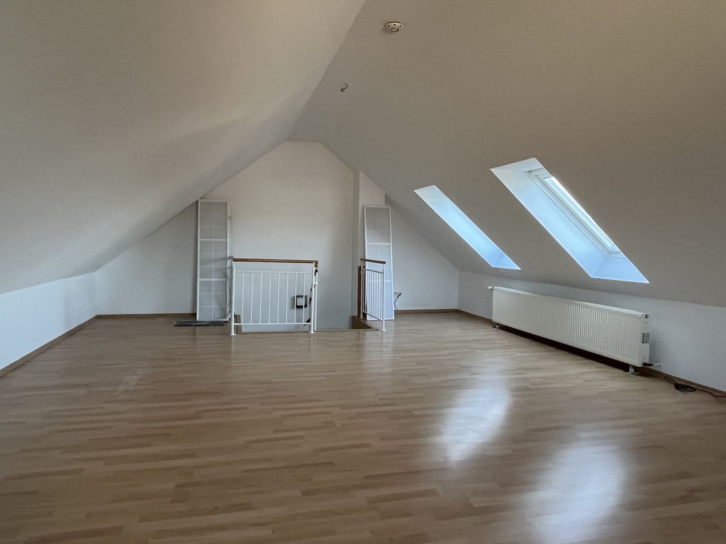 Diele, Wohnzimmer mit Austritt auf den Balkon, geräumige Küche, Kinder- oder Arbeitszimmer, Badezimmer und sep. Gäste-WC. Im Spitzboden befindet sich das Schlafzimmer.