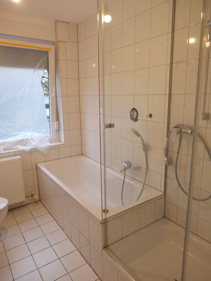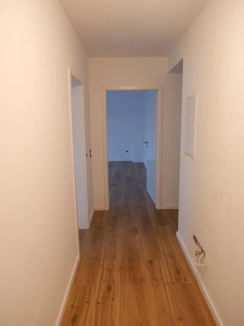 Die Wohnung wurde gerade modernisiert und komplett weiß gestrichen. Die Böden sind im Bad und in der Küche mit Fliesen ausgestattet, ansonsten liegt überall ein neuer, schicker Vinylboden. Desweiteren gibt es neue, weiße Kunststoff-Fenster mit Isolierverglasung und Rollläden sowie neue, weiße Innentüren, die Elektrik ist ebenfalls neu. Die Beheizung erfolgt über Fernwäme mit WW-Aufbereitung.